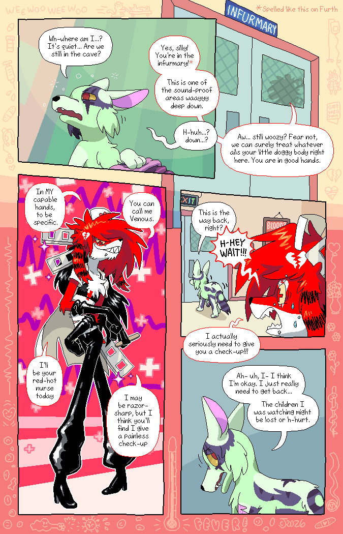 RED NURSE: Yes, silly! You're in the infurmary!*